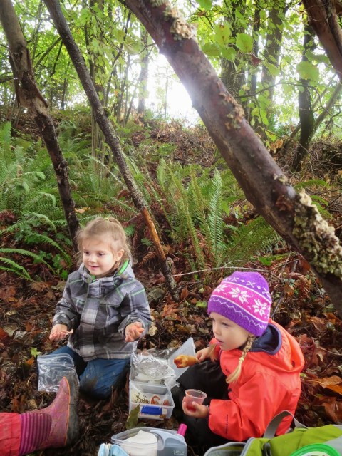 Every Thursday we head out for our “Urban Forest Hike Day”. This day has become the most treasured day of the week. We have grand adventures where our circle time and story time come alive for the children as they explore nature. We are blessed that our school is just two blocks from Baltimore Woods, a native woods area that is under restoration. The woods features such trees as Oregon White Oak, Madrone and Broad Leaf Maples. The woods provide shelter to a variety of birds, mammals and insects. Here is a collection of pictures from our Hike Day to give an idea of why this day has become such a treasure.